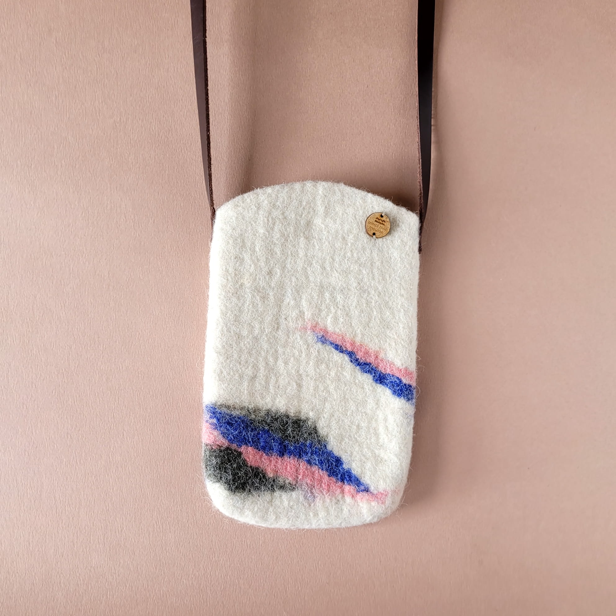 Baba est une pochette pour téléphone. Avec son feutre est épais et sa lanière est en cuir, elle est à la fois solide et élégante et pratique !