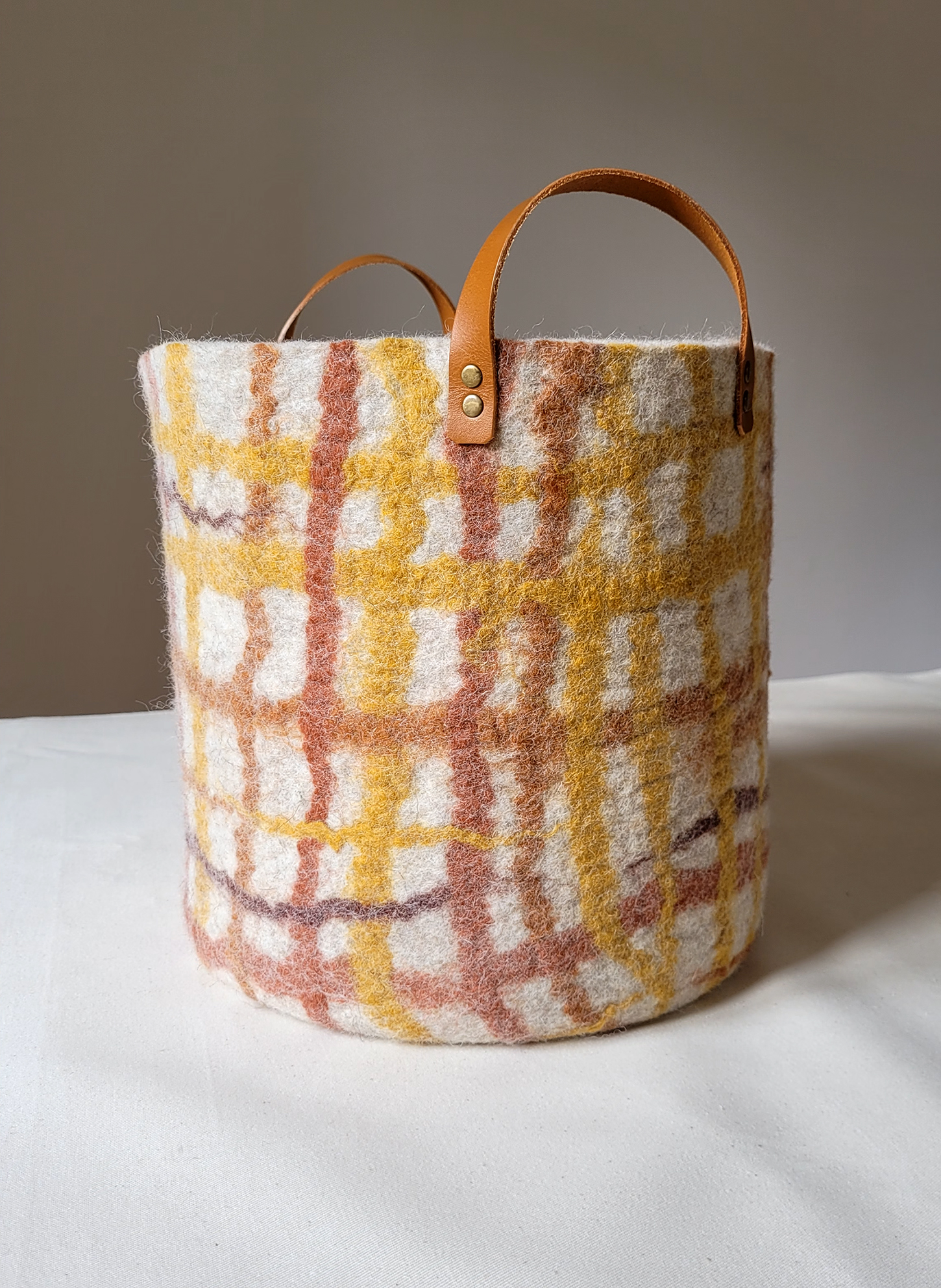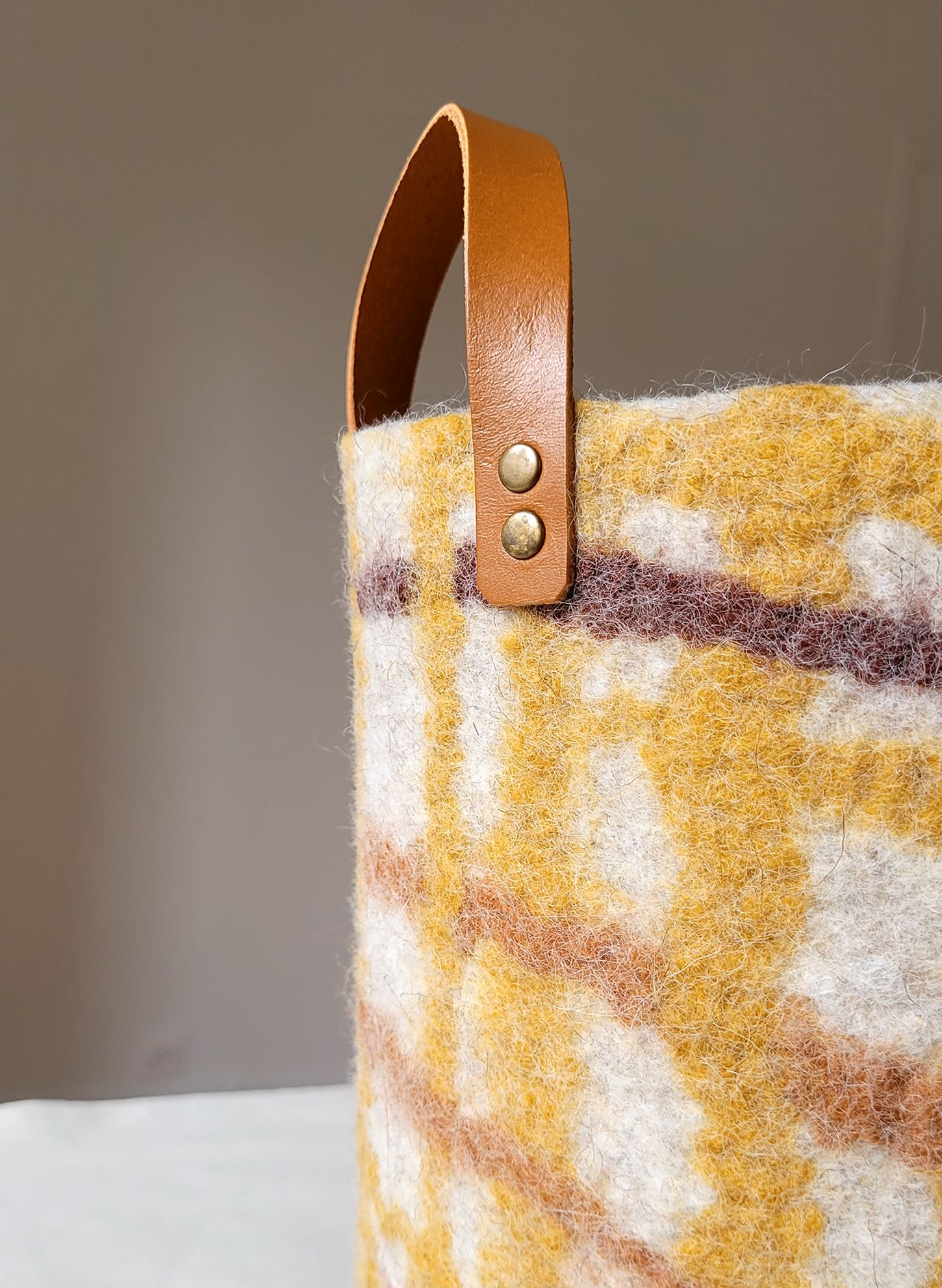 Ce panier en laine feutrée sera parfait pour habiller vos plantes, ranger vos foulards, pelotes de laine, peluches et autres petits objets.