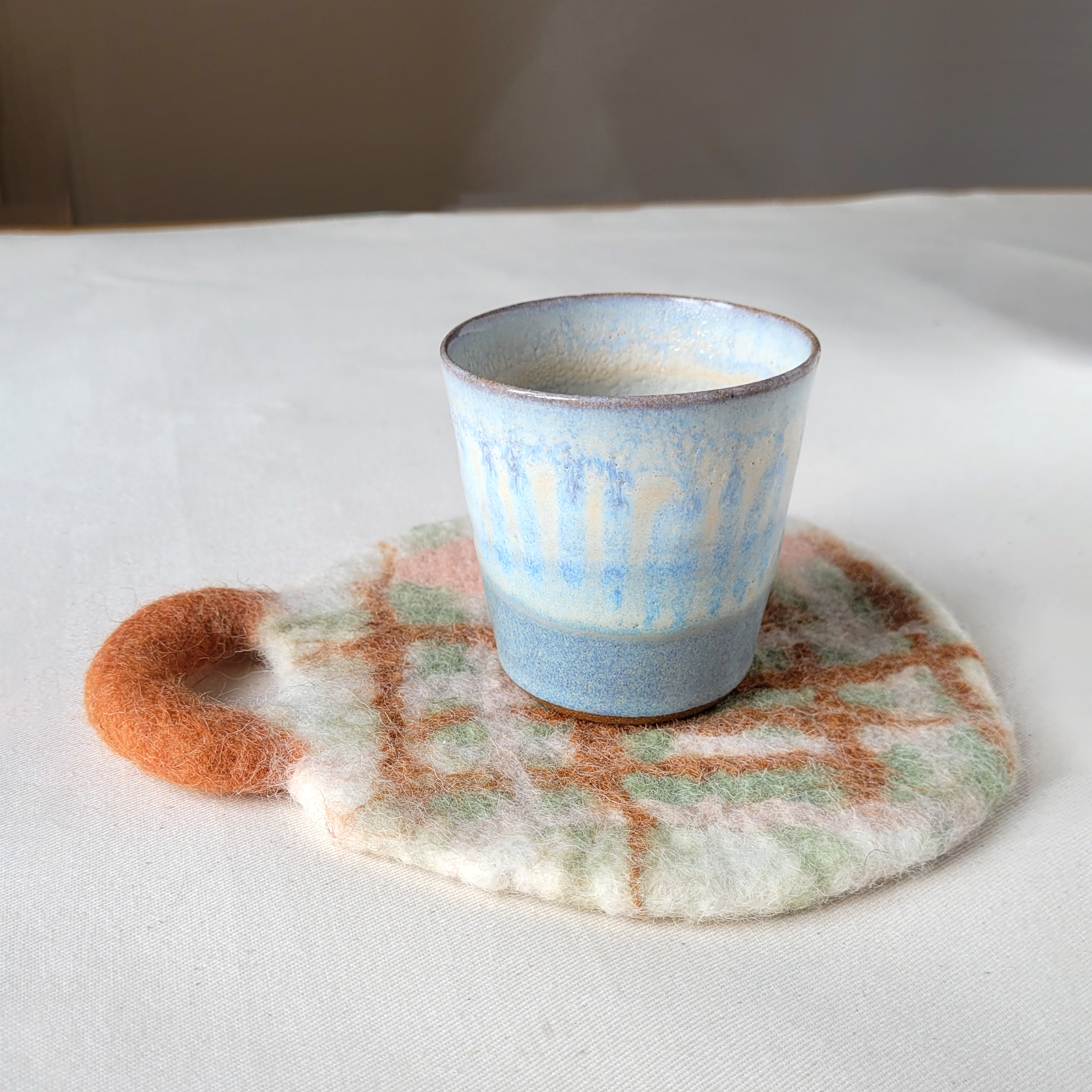 La laine feutrée est un excellent isolant thermique, ce qui permet à ce sous tasse de protéger votre table de la chaleur.