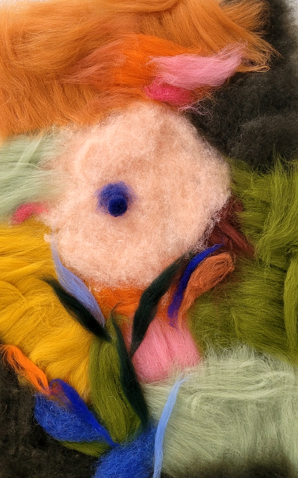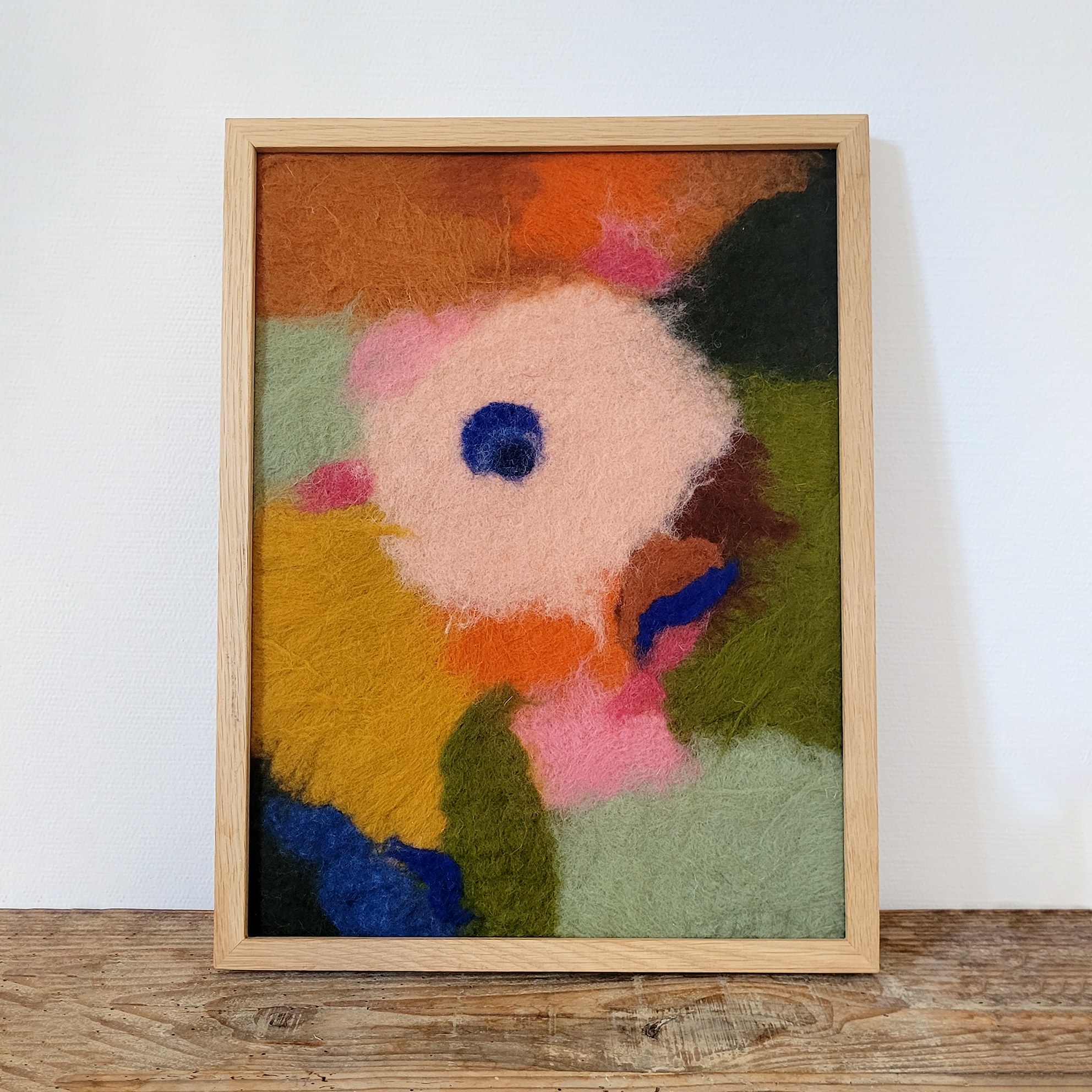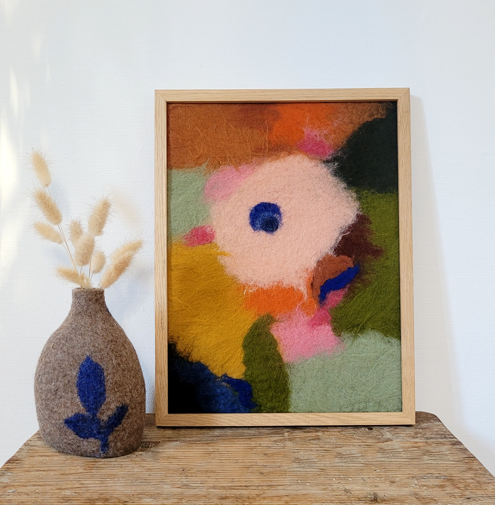 Maya Tableau en laine feutrée. Pièce unique. 32 x 42 cm.